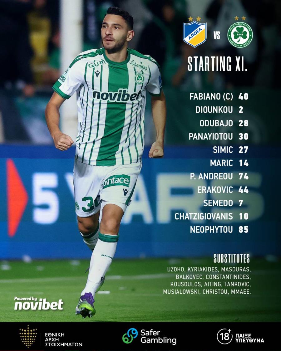 Στον πάγκο: Περέια, Χριστοδούλου, Αντωνίου, Σταφυλίδης, Ντέγκενεκ, Μέγιερ, Ντράζιτς, Αμπάγκνα, Διαμαντάκος, Πουρσαϊτίδης, Γιαννακού, Ολαγίνκα.