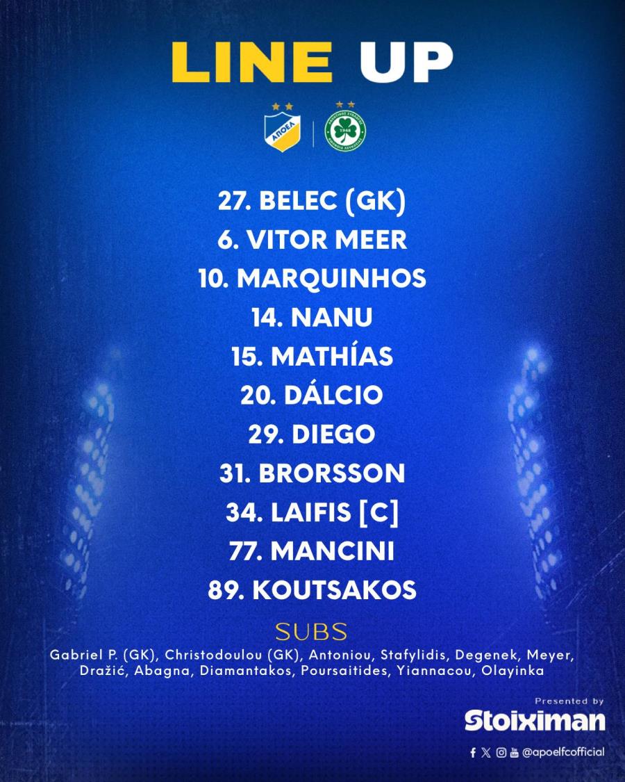 ΑΠΟΕΛ: Μπέλετς, Μιρ, Νανού, Λαΐφης, Μπρόρσον, Ντάλσιο, Ρόσα, Τομάς, Μαρκίνιος, Μανσίνι, Κούτσακος.
