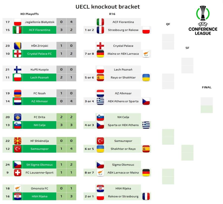 Ριέκα (Κροατία) ή Φιορεντίνα (Ιταλία) vs Στρασμπούρ (Γαλλία) ή Ρακόβ (Πολωνία)