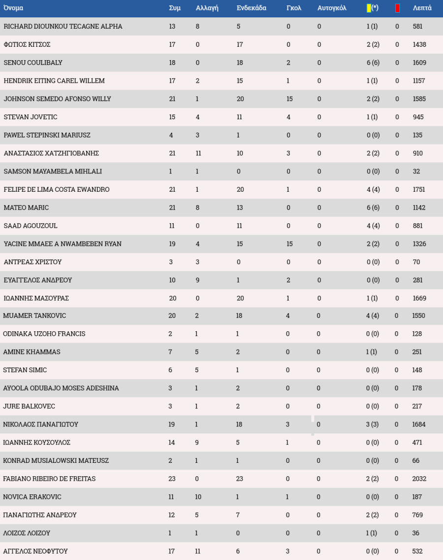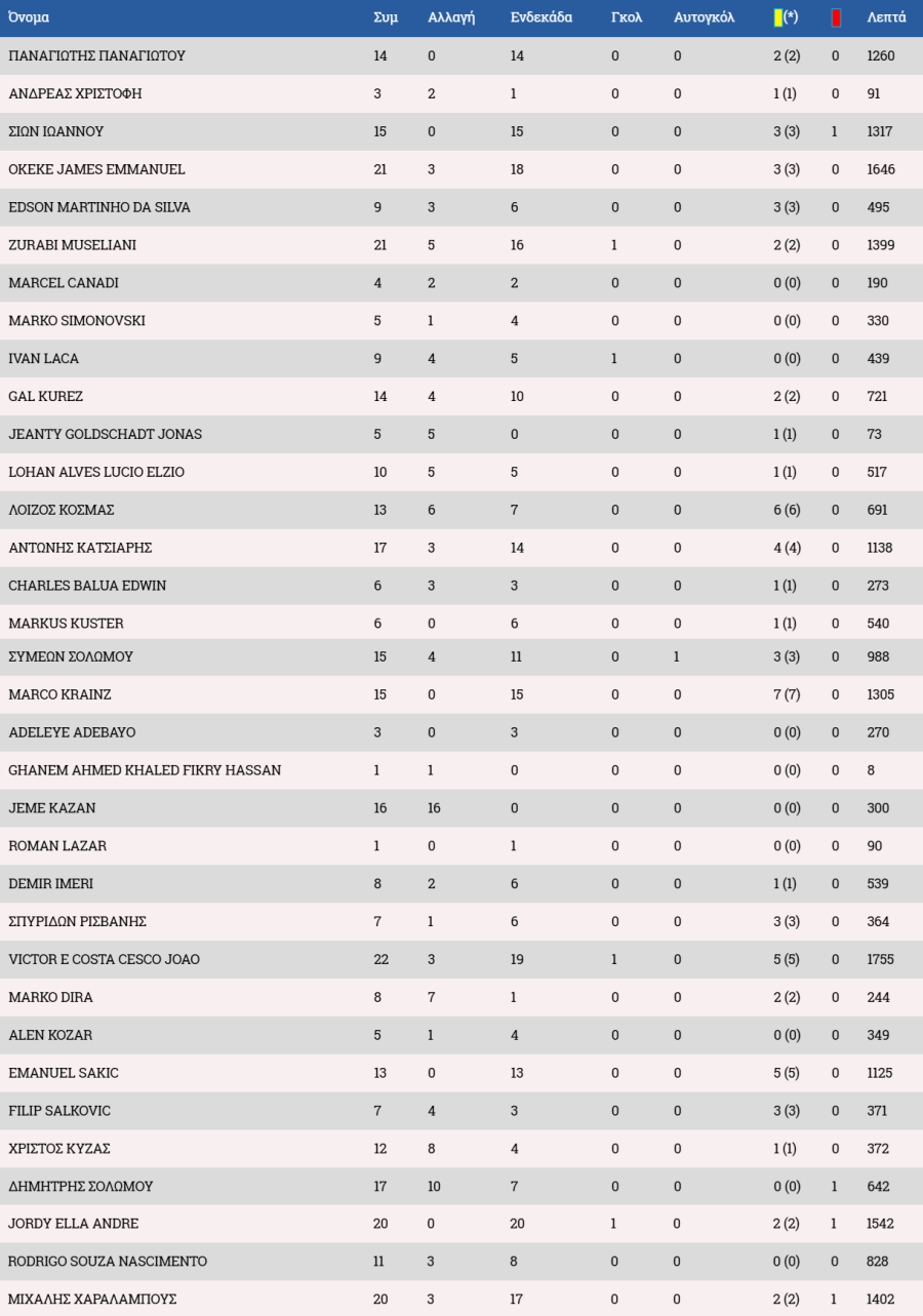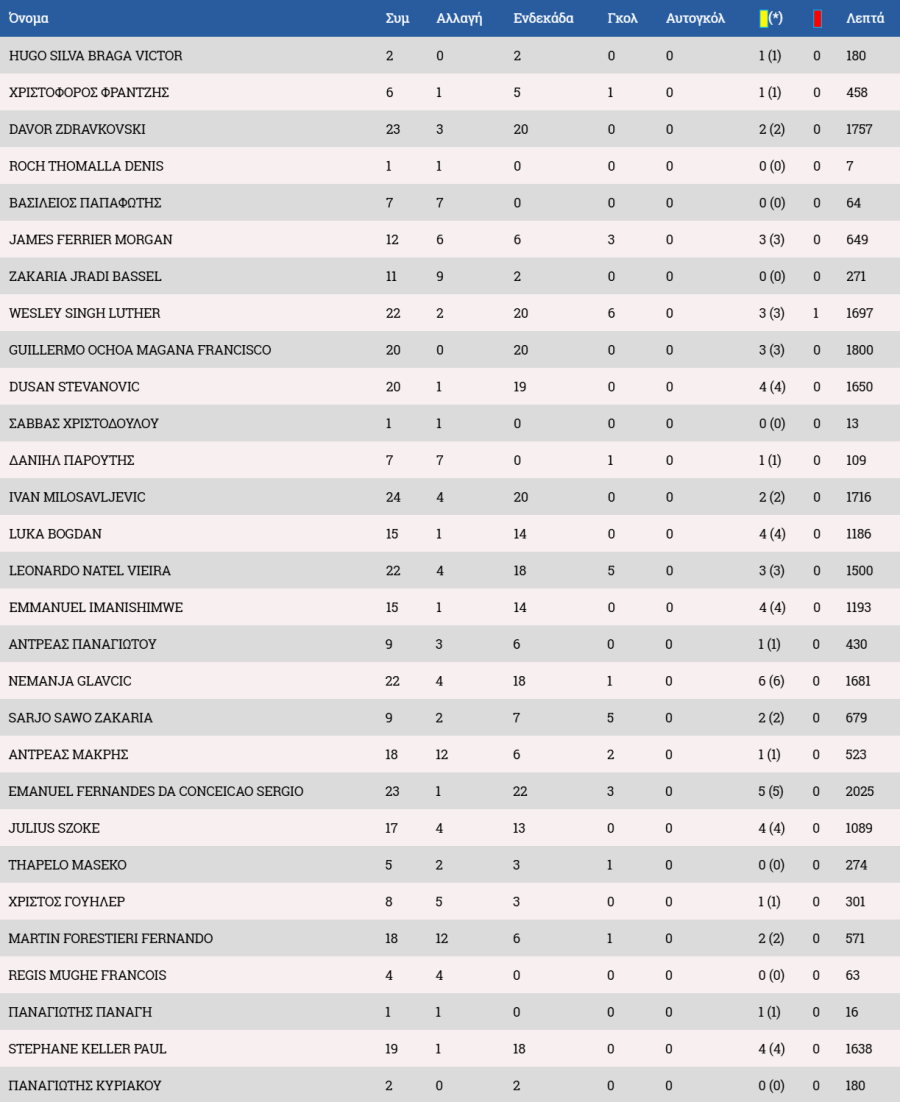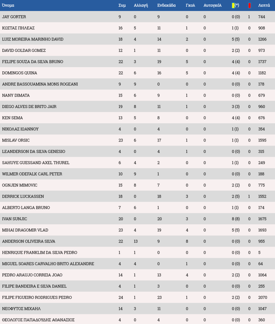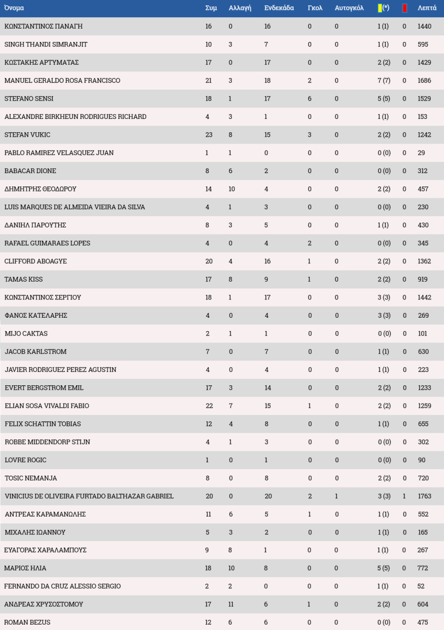 Τα στατιστικά των ποδοσφαιριστών :