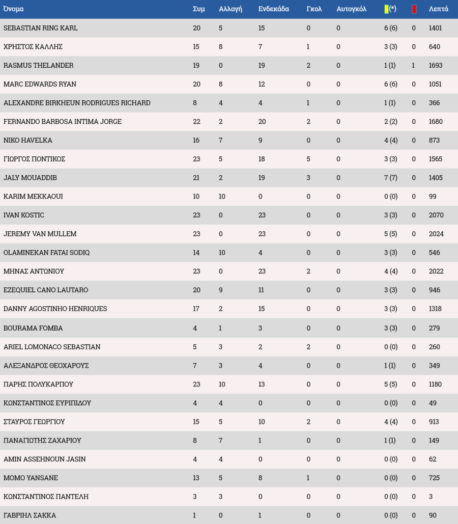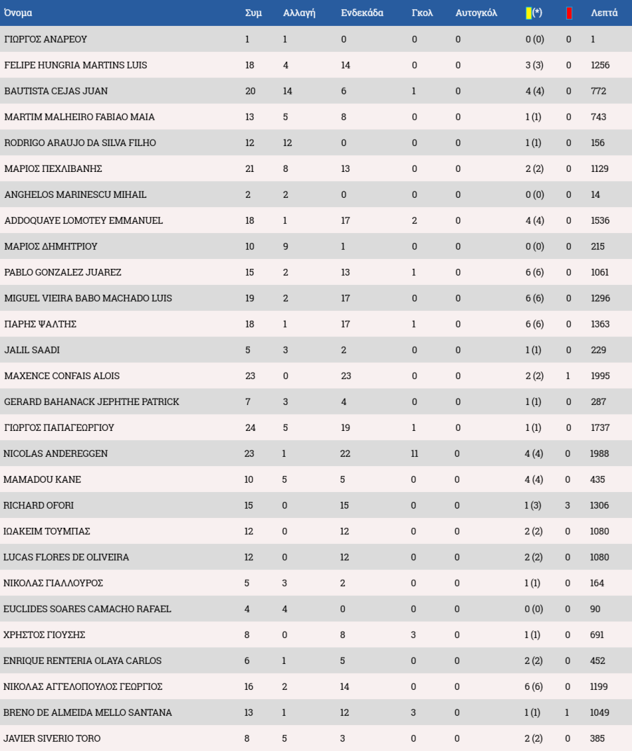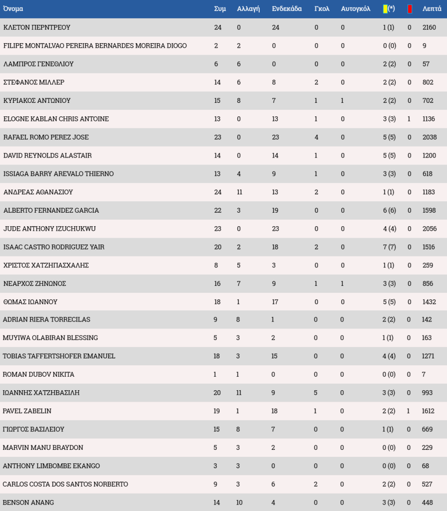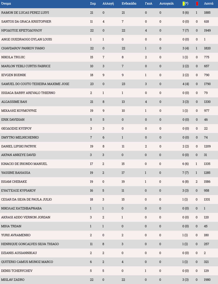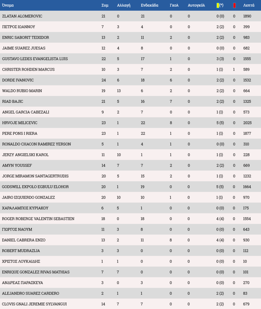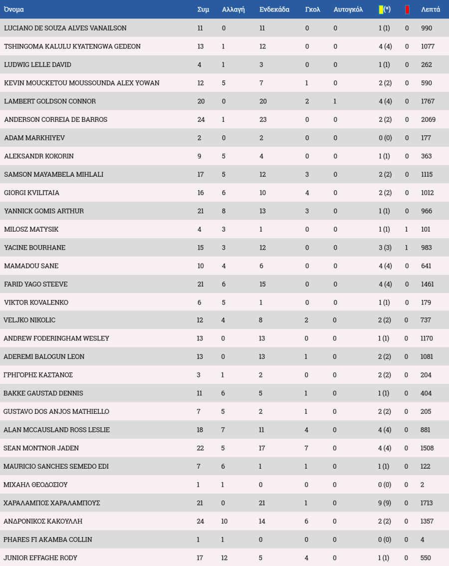 Τα στατιστικά των ποδοσφαιριστών :