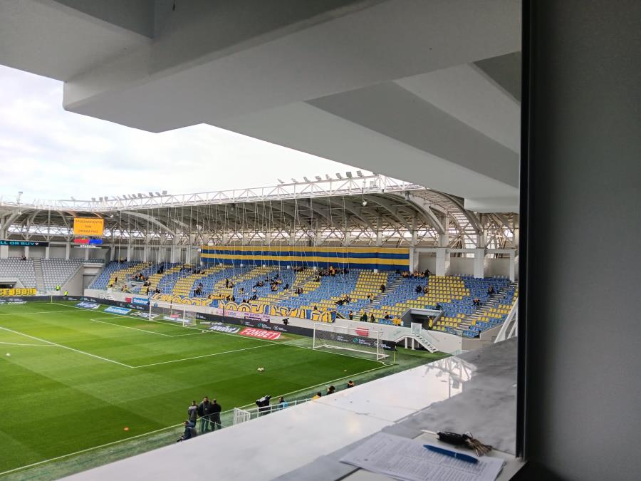 Ένα μεγάλο πανό και σχοινιά είναι τοποθετημένα στην κερκίδα της ΑΕΛ.