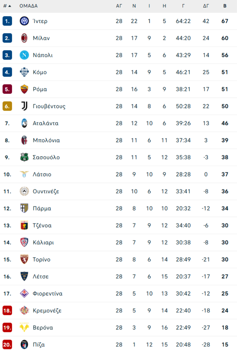 Τζένοα-Ρόμα 2-1 (52' Μεσίας, 80' Βιτίνια - 55' Εντικά)