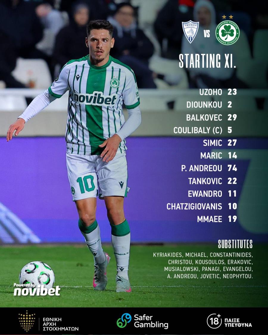 Ομόνοια: Ουζόχο, Ντιουνκού, Κουλιμπαλί, Χατζηγιοβάνης, Εβάντρο, Μάριτς, Μαέ, Τάνκοβιτς, Σίμιτς, Μπάλκοβετς, Ανδρέου Π.