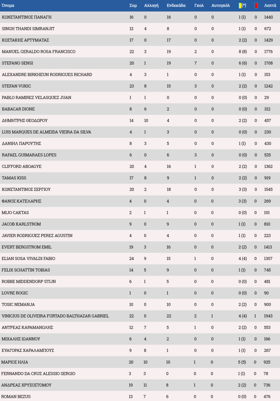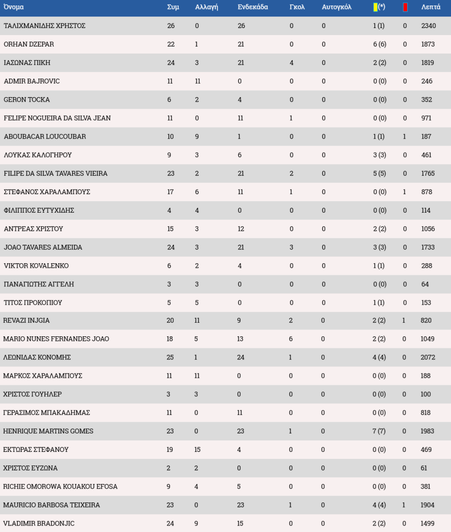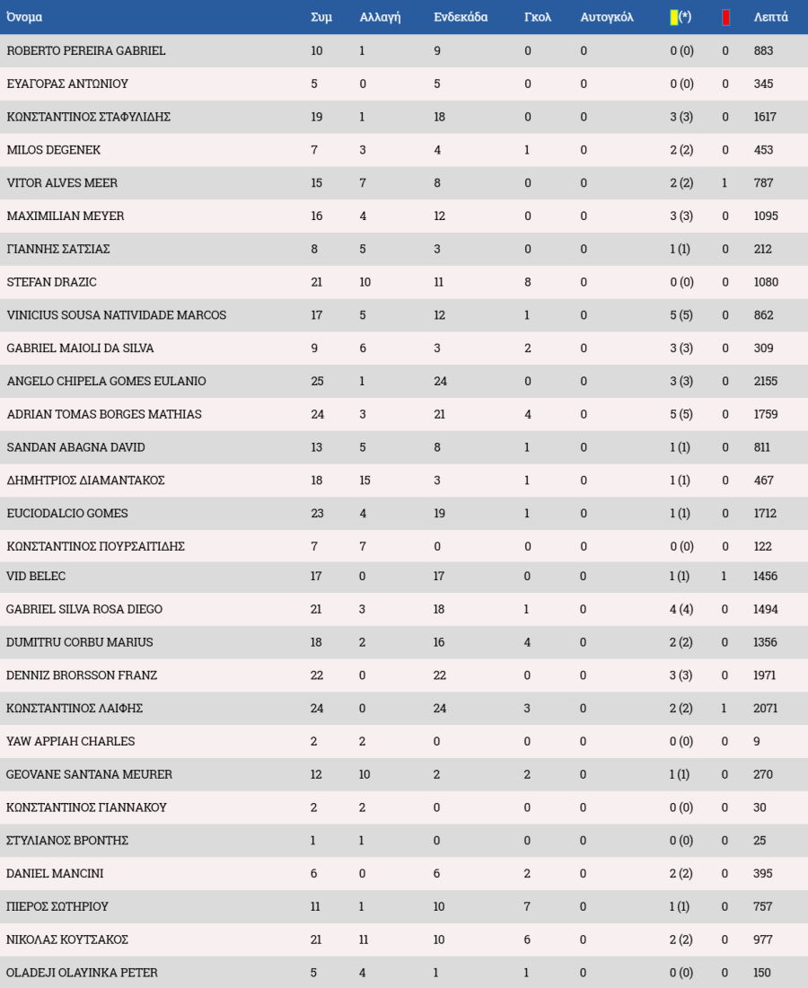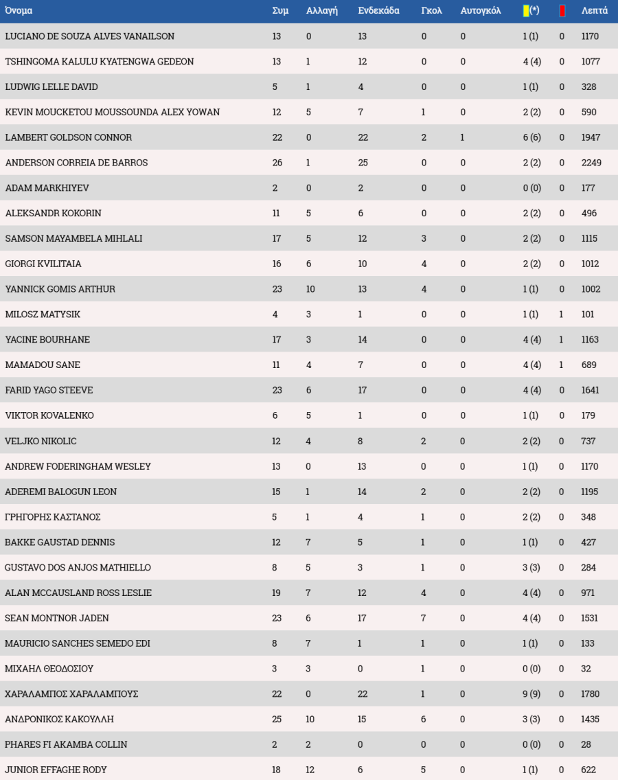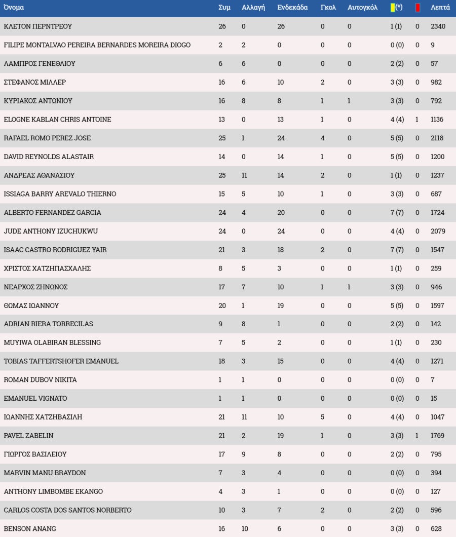 Στον πάγκο οι Αντεμπάγιο, Λαζάρ, Χριστοδούλου, Χριστοφή, Ιωάννου Α., Αχμέντ, Ρισβάνης