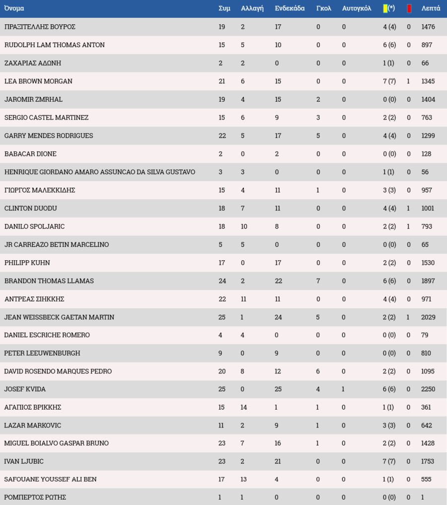 Τα στατιστικά των ποδοσφαιριστών: