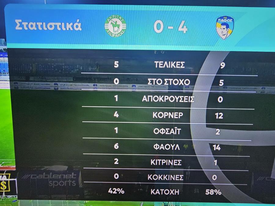 Ακρίτας– Πάφος 0-4 (Κορέια 19', Σούνιτς 47', Λουίζ 78', Ζάζα 90')