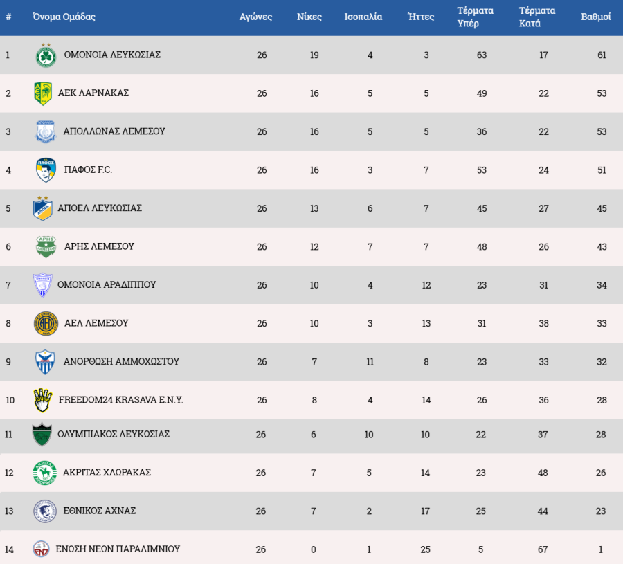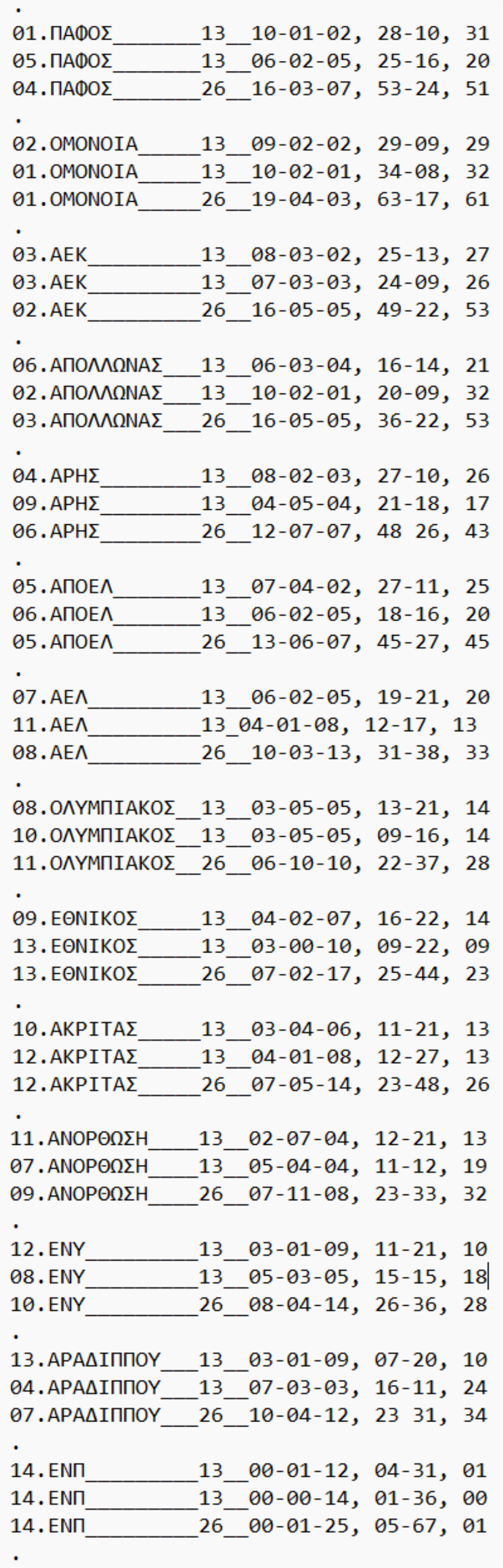 Τα Περιστέρια από την 13η θέση με 10 βαθμούς με την ολοκλήρωση του α' γύρου, με μία εντυπωσιακή πορεία στο β' γύρο μάζεψαν 24 βαθμούς και ανέβηκαν στην 7η θέση με 34 βαθμούς.