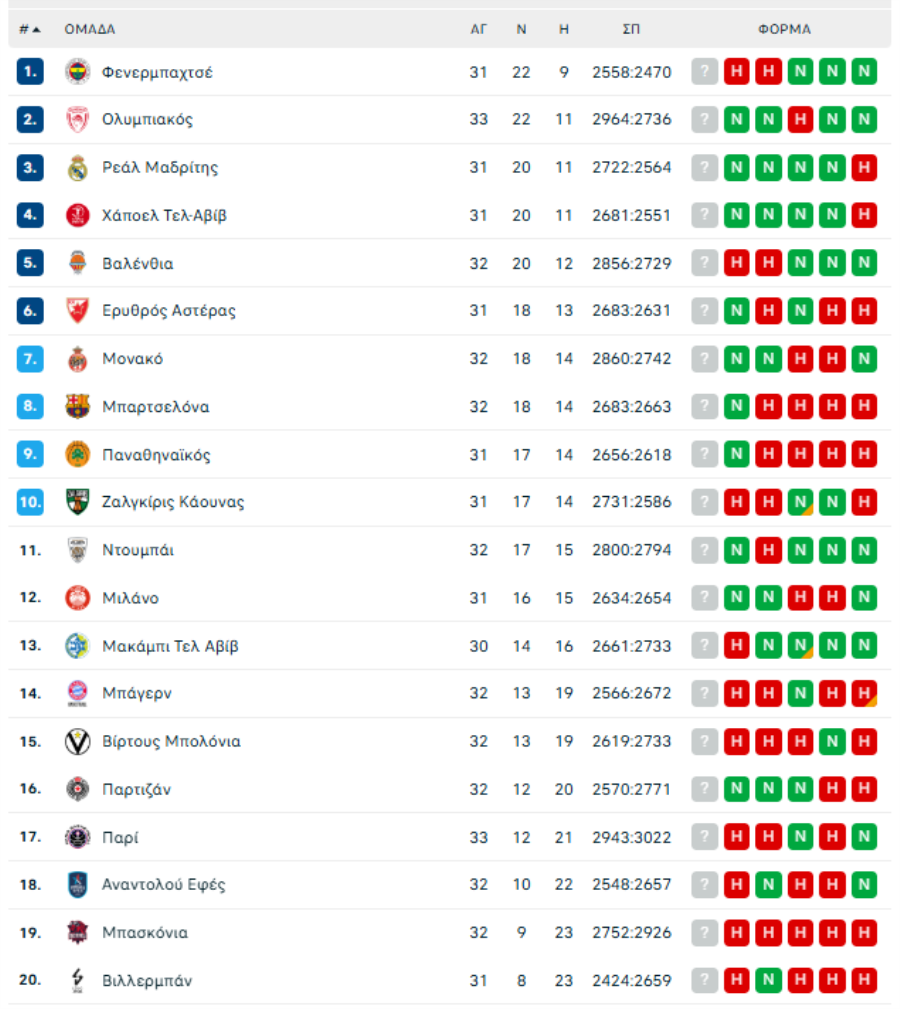 Ο Ολυμπιακός συνεχίζει την εντυπωσιακή του πορεία στη Euroleague και πλησιάζει πλέον ολοένα και περισσότερο στην πρώτη τετράδα.