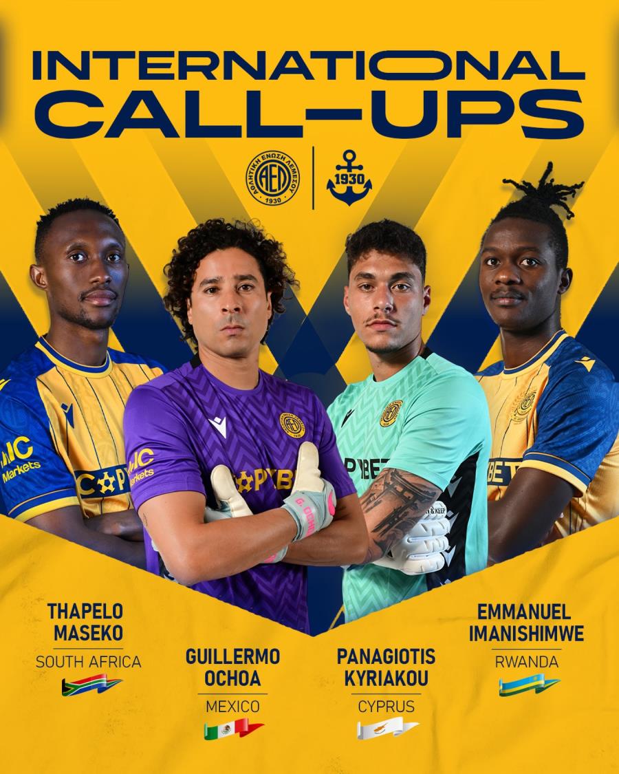 Ο Παναγιώτης Κυριάκου πήρε κλήση στην Εθνική Κύπρου, ο Οτσόα στο Μεξικό, ο Ιμανισίμουε στη Ρουάντα και ο Μασέκο στη Νότιο Αφρική.