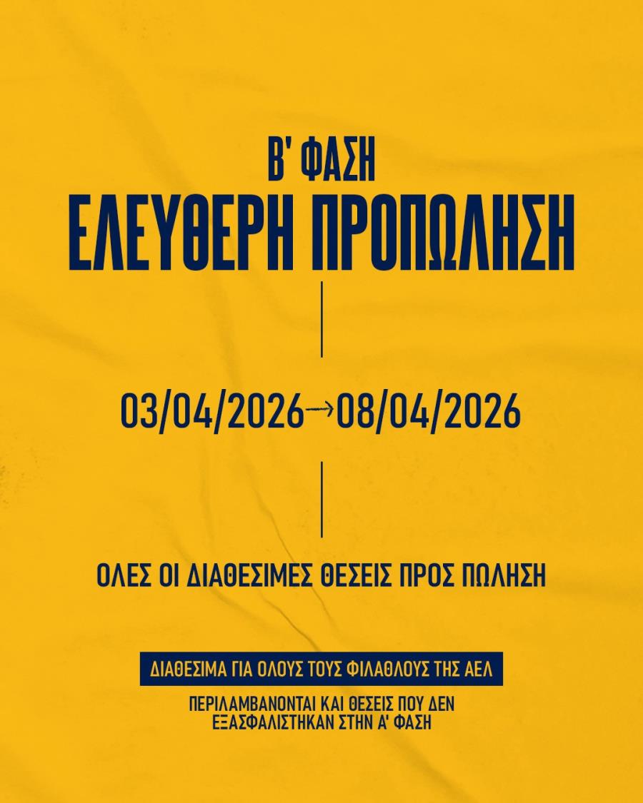 • Η προπώληση είναι ελεύθερη για όλους τους φιλάθλους της ΑΕΛ.
