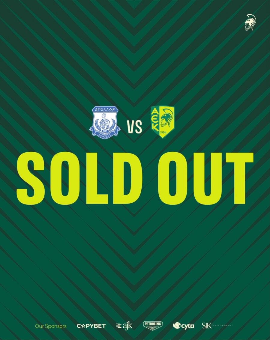 Η ΑΕΚ LARNACA FC LTD ενημερώνει το φίλαθλο κοινό ότι ενόψει του αγώνα της 2ης αγωνιστικής της Β' Φάσης του πρωταθλήματος με αντίπαλο τον Απόλλωνα, ο οποίος θα διεξαχθεί την Κυριακή (05/04, 19:00) στο Στάδιο Αλφαμέγα, έχουν εξαντληθεί όλα τα εισιτήρια.