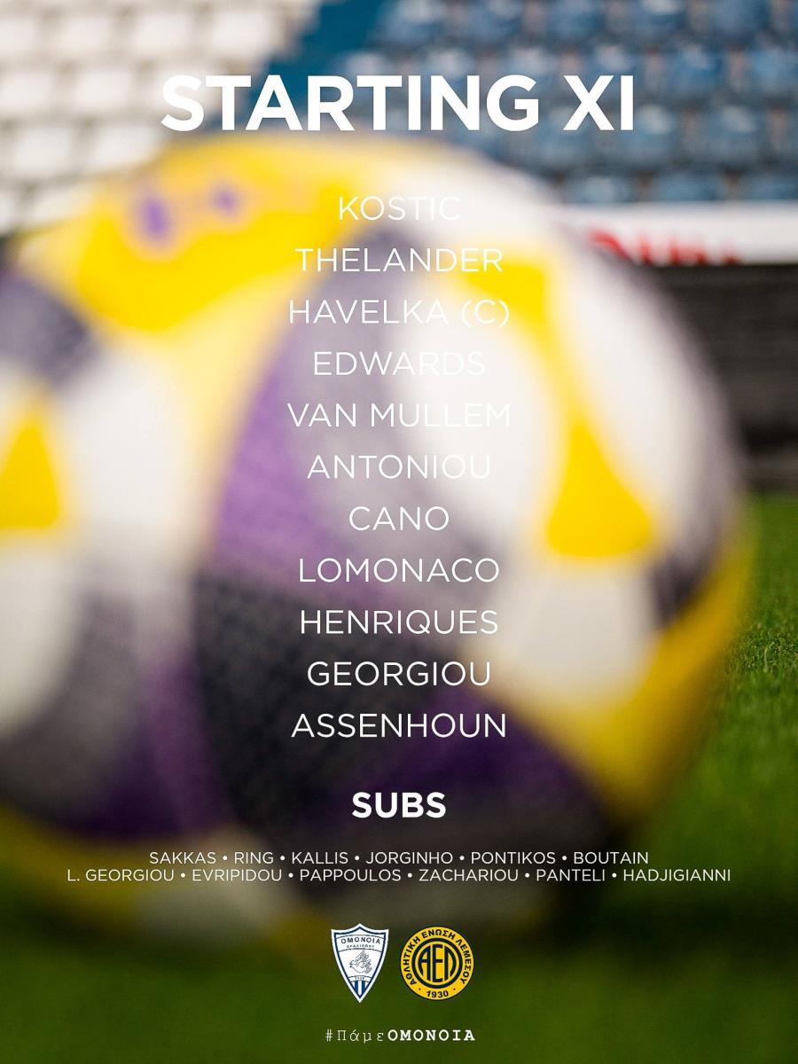 Στον πάγκο: Κόστιτς, Ρινκ, Καλλής, Ζορζίνιο, Ποντικός, Μπούτεν, Γεωργίου Λ., Ευριπίδου, Παππούλος, Ζαχαρίου, Παντελή, Χατζηγιάννη.