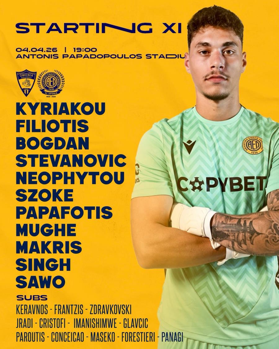 ΑΕΛ: Κυριάκου, Παπαφώτης, Σινγκ, Στεφάνοβιτς, Μπογκντάν, Νεοφύτου, Φιλιώτης, Σάβο, Μακρής, Σόκε, Μουγκ