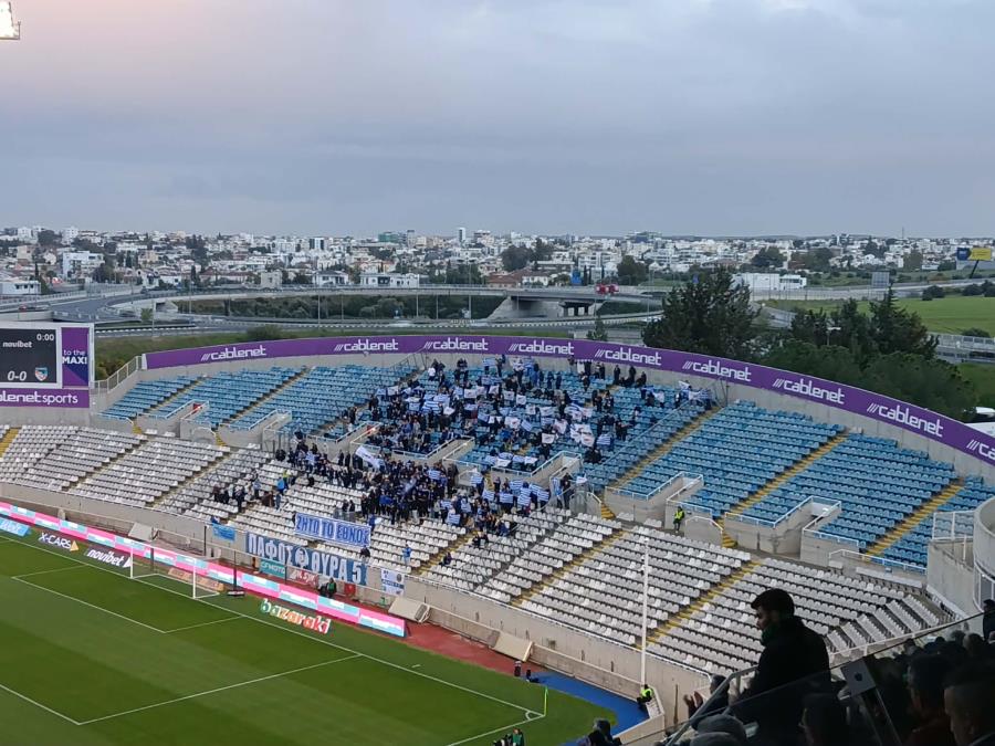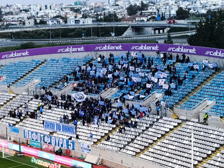 Στο κέντρο της κερκίδας τους δέσποζε πανό με την αναγραφή «Ζήτω το Έθνος», δίνοντας έναν εθνικό τόνο στην παρουσία τους.