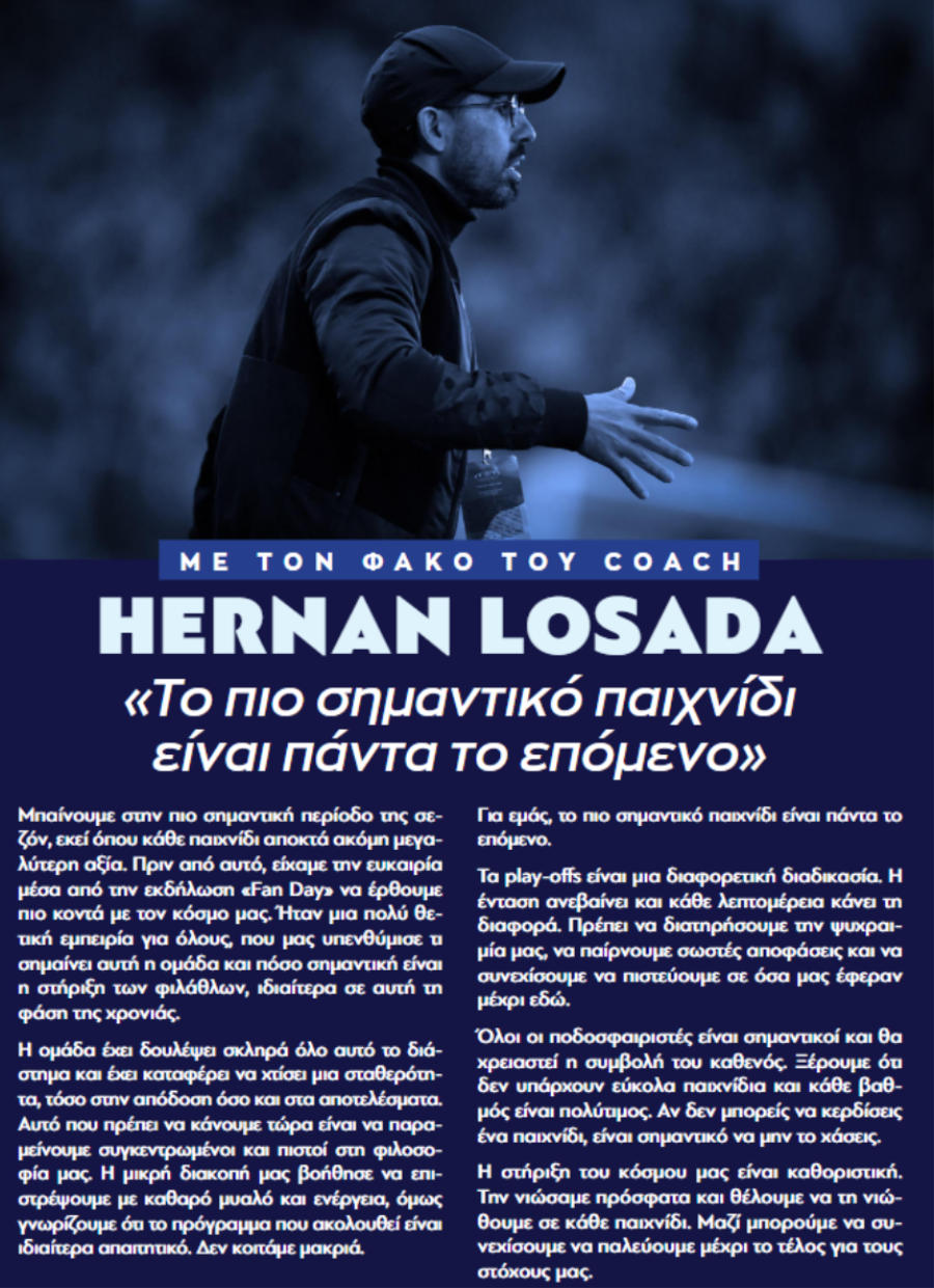 Δηλώσεις στο Match Programme του αποψινού (19:00) ντέρμπι με αντίπαλο την ΑΕΚ στο στάδιο «Αλφαμέγα» έκανε ο προπονητής του Απόλλωνα, Ερνάν Λοσάδα.