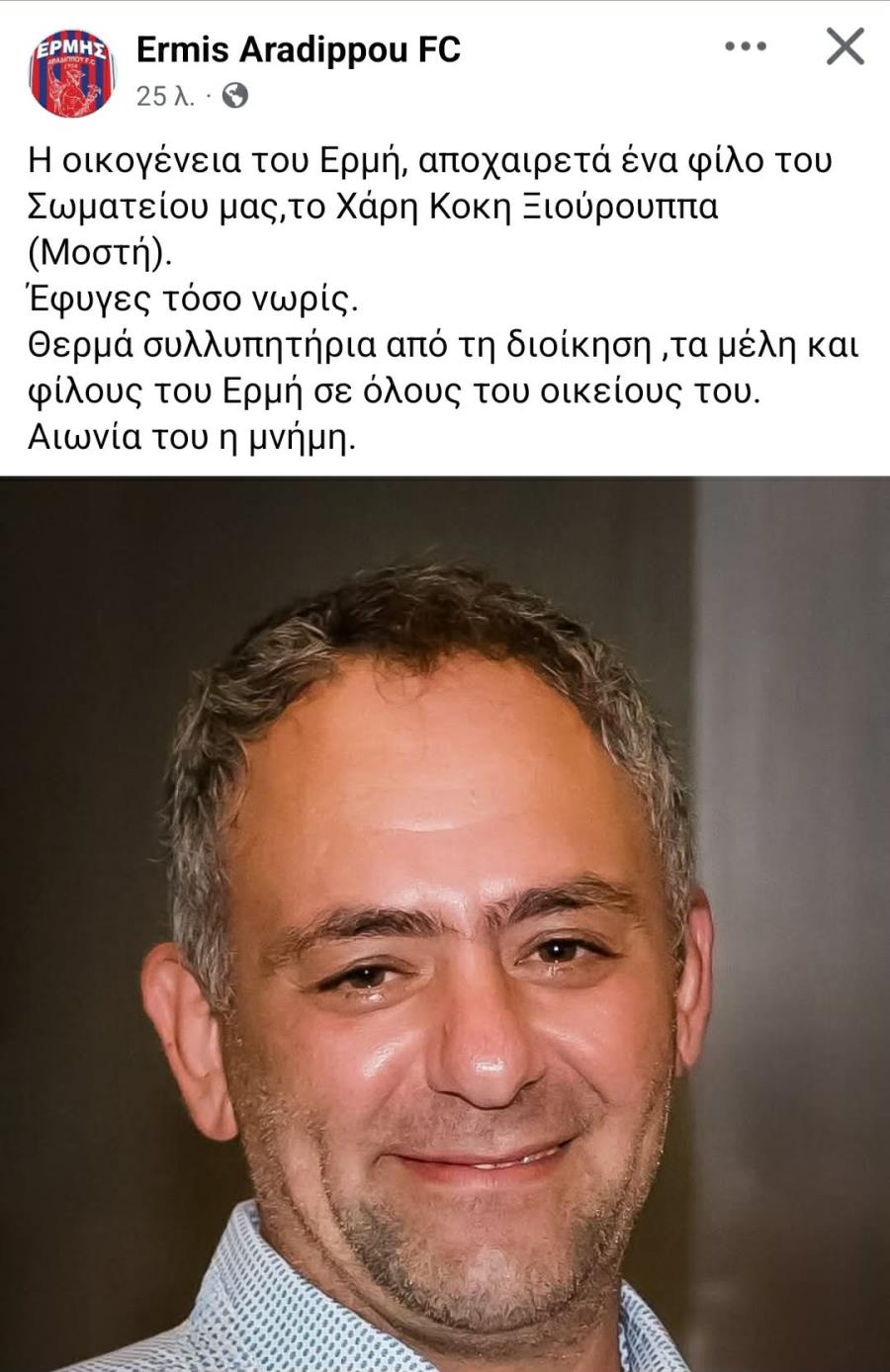 Η ομάδα της Λάρνακας αποχαιρετά τον Χάρη Ξιούρουππα με ανάρτησή της στα κοινωνικά δίκτυα.