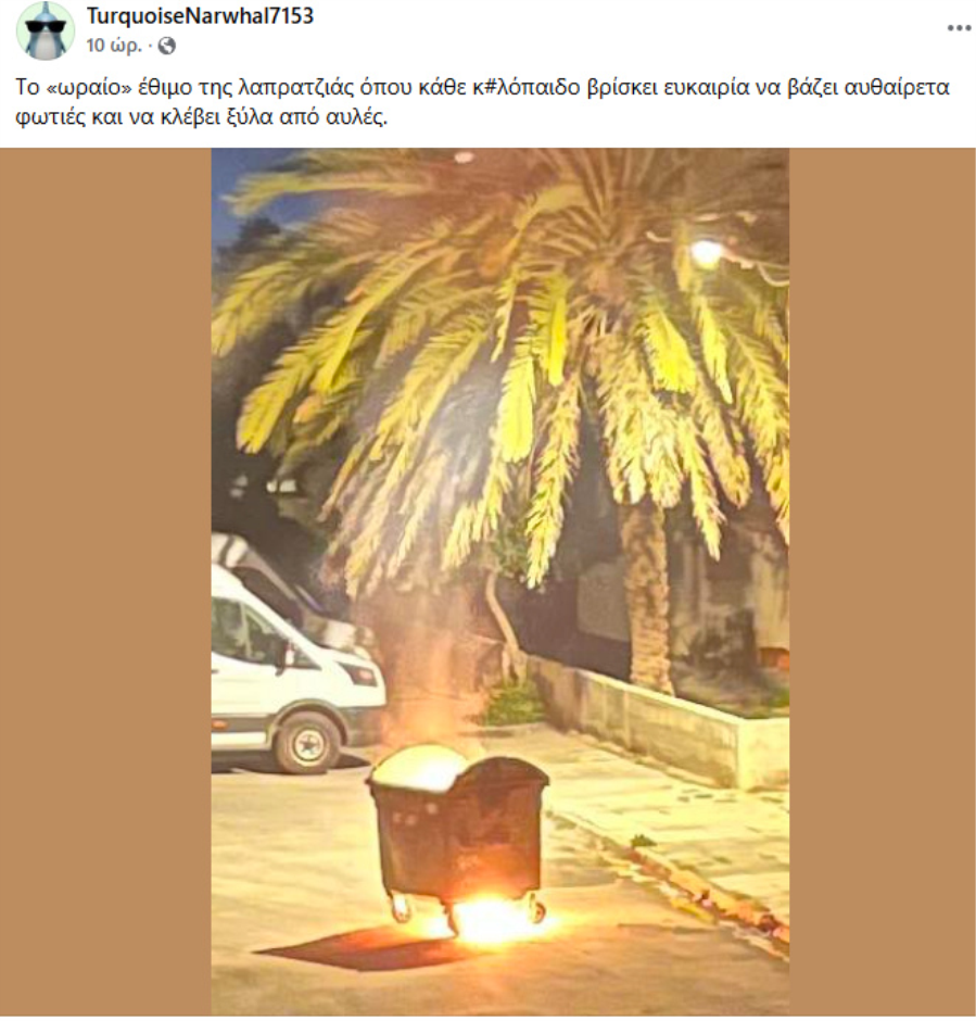 Σε πρόσφατο περιστατικό, άγνωστοι έβαλαν φωτιά σε κάδο απορριμμάτων, τον οποίο χρησιμοποίησαν ως «λαμπρατζιά», δημιουργώντας αναστάτωση σε κατοικημένη περιοχή.