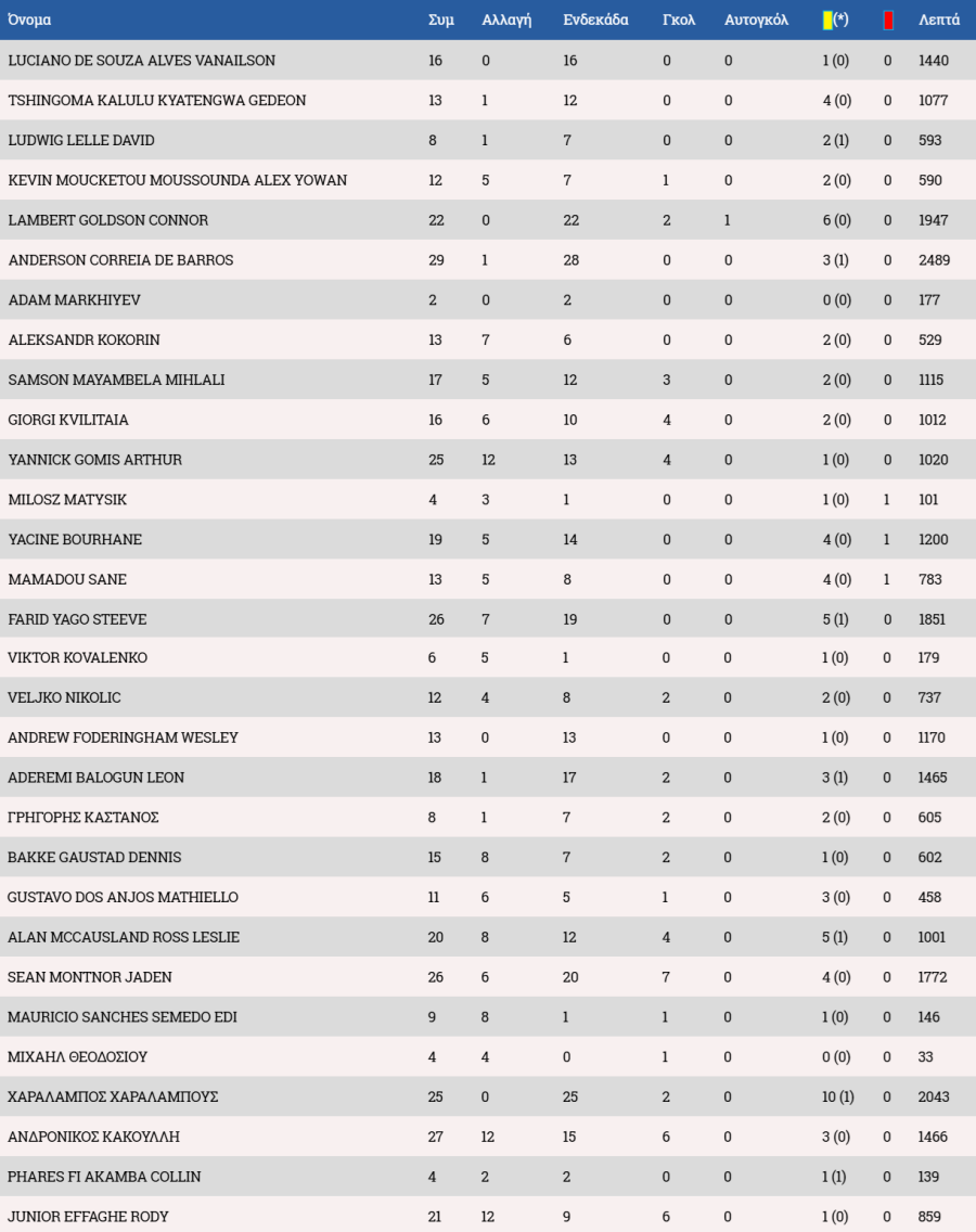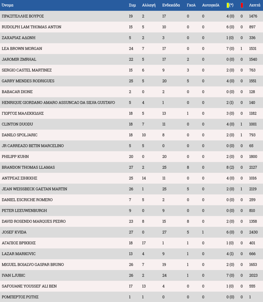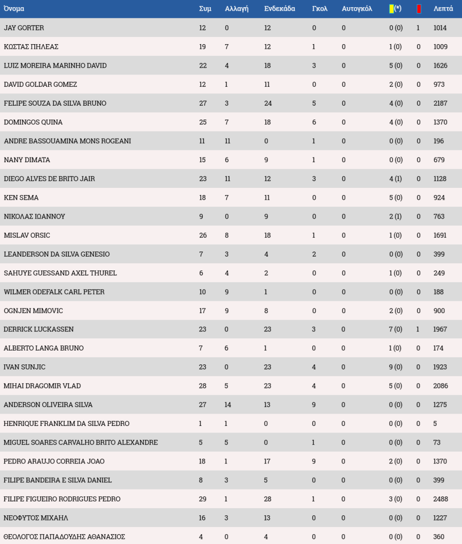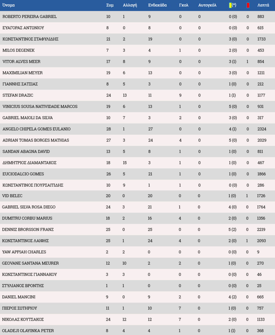 Στον πάγκο: Μιχαήλ, Παπαδούδης, Μπασουαμινά, Γκεσάν, Όντεφαλκ, Μιχαήλ, Σκάφη, Ιωάννου Κ.