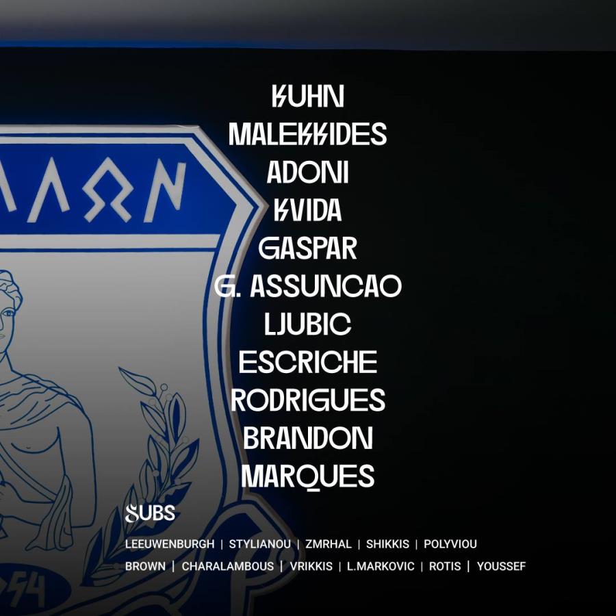 Απόλλωνας: Κουν, Άδωνη, Ροντρίγκες, Ασουνσάο, Μαλεκκίδης, Τόμας, Εσκρίτσε, Μάρκες, Γκασπάρ, Κβίντα, Λιούμπιτς.