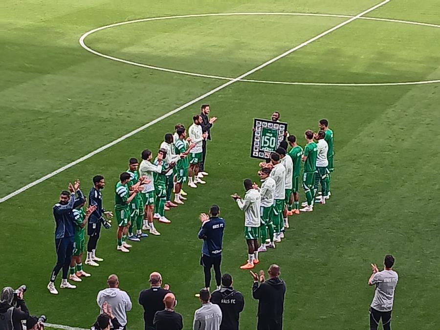 Ο αθλητικός διευθυντής του Άρη, Ντάνιελ Σικόρσκι τίμησε τον Στιβ Γιαγκό για την συμπλήρωση 150 συμμετοχών με τη φανέλα της ομάδας.