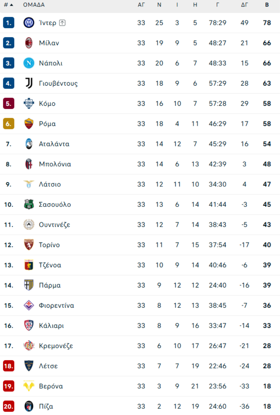 Δείτε τα στιγμιότυπα της 33ης αγωνιστικής του ιταλικού πρωταθλήματος.