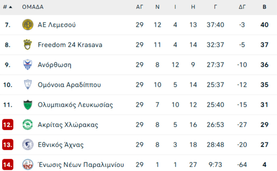 7η αγωνιστική: ΕΝΥ-ΕΝΠ, Ολυμπιακός-Ανόρθωση, Ακρίτας-ΑΕΛ, Εθνικός-Ομόνοια Αρ.