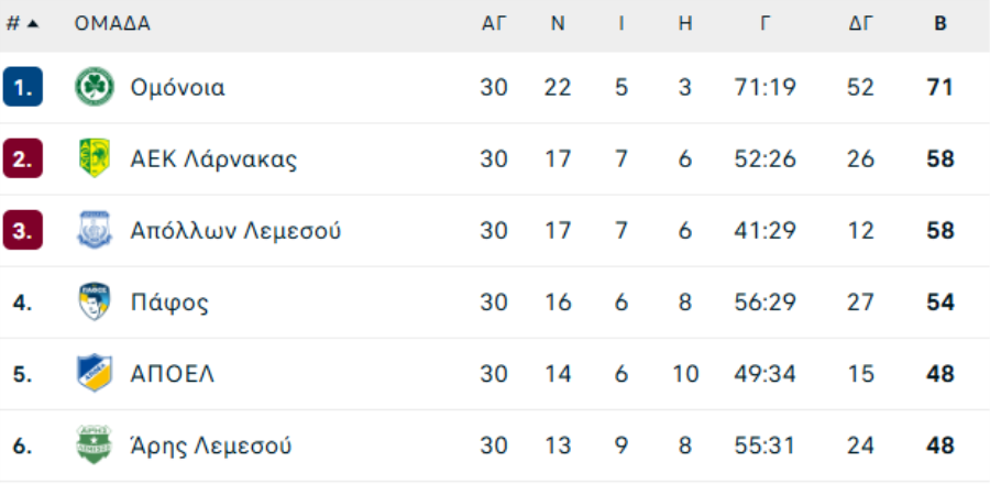 Η Ομόνοια... χαϊδεύει τον τίτλο - ΒΑΘΜΟΛΟΓΙΑ και συνέχεια