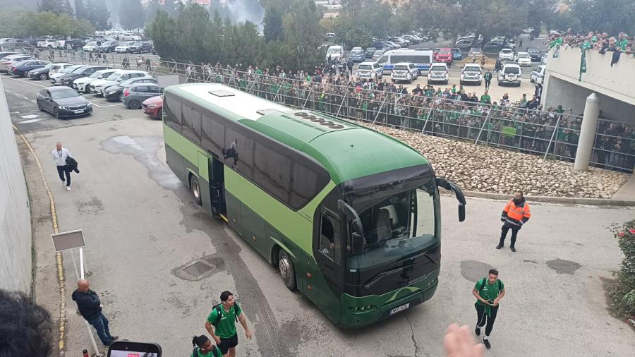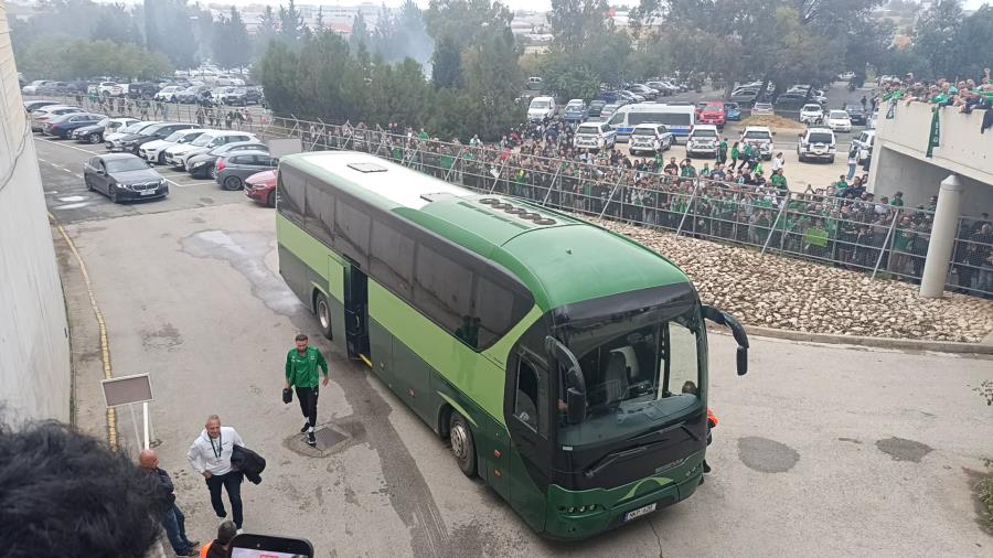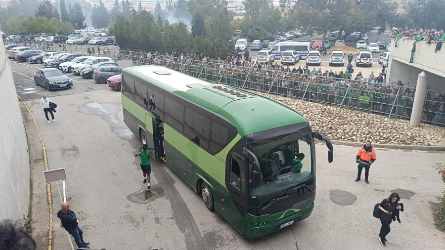 Με συνθήματα και έντονο παλμό, οι «πράσινοι» έστειλαν το δικό τους μήνυμα νίκης για το ντέρμπι, ντοπάροντας ψυχολογικά την ομάδα λίγο πριν την είσοδό της στα αποδυτήρια. Η εικόνα έξω από τη δυτική κερκίδα ήταν εντυπωσιακή, με τον κόσμο να ζητά επιτακτικά το τρίποντο απέναντι στον αιώνιο αντίπαλο.