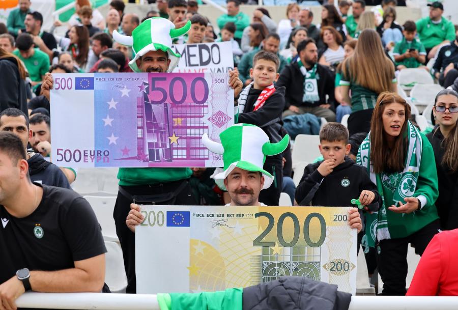 Οι δύο οπαδοί επιστράτευσαν τη φαντασία τους, με τον έναν να κρατά πανό που έγραφε για 500 ευρώ και τον άλλον για 200.