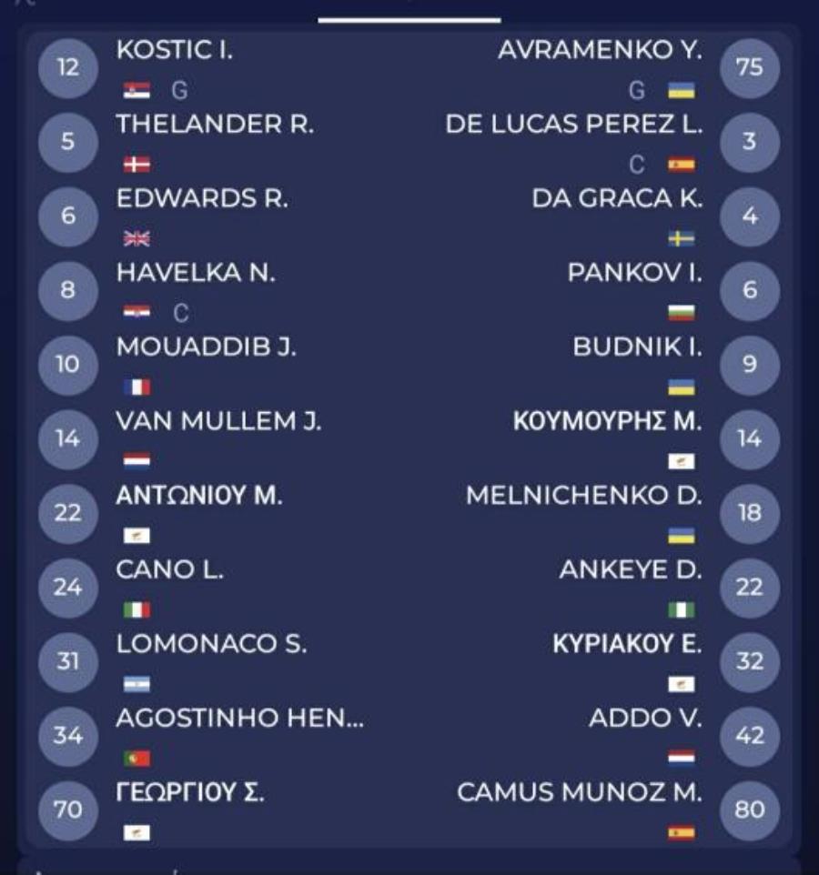 Freedom24 Krasava ΕΝΥ (Ρωσταντής): Αβραμένκο, Ντε Λούκας, Ντα Γκράτσα, Πάνκοφ, Μπούντνικ, Κουμούρης, Μελνιτσένκο, Ανκέγιε, Κυριάκου, Άντο, Κάμους.