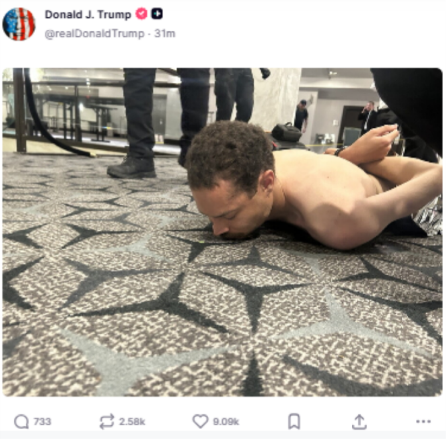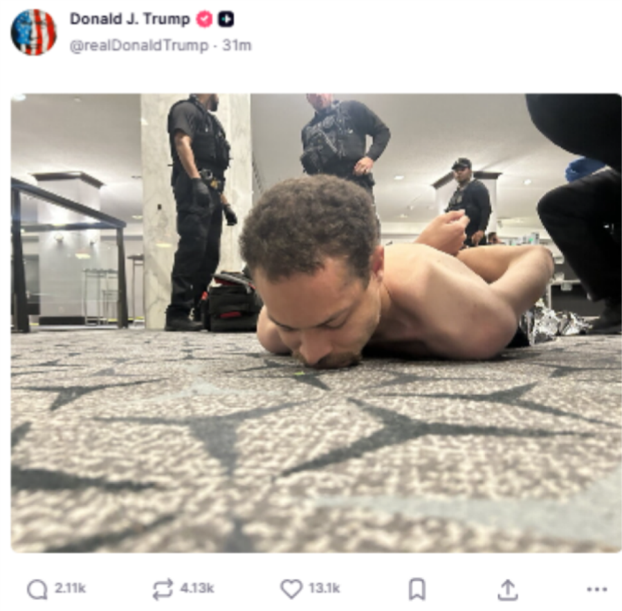 Παράλληλα ανάρτησε στο Truth Social και φωτογραφίες από τη σύλληψη του δράστη.