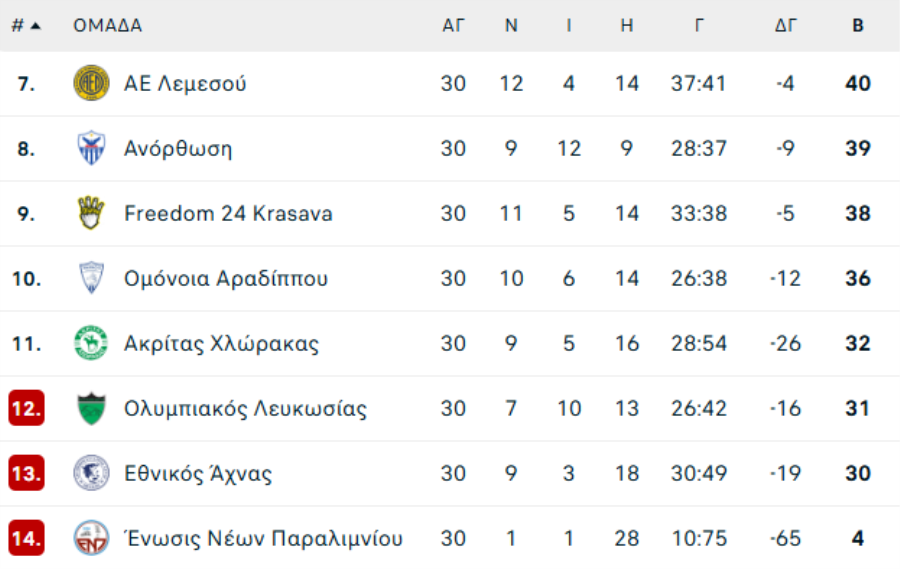 6η αγωνιστική: ΕΝΠ-Εθνικός, Ομόνοια Αρ.-Ακρίτας, ΑΕΛ-Ολυμπιακός, Ανόρθωση-ΕΝΥ