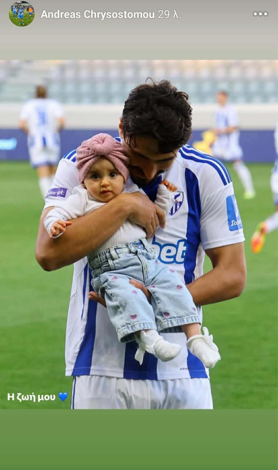 Μαζί με την κορούλα του εισήλθε στον αγωνιστικό χώρο του «Αλφαμέγα» πριν το ματς με την ΑΕΛ ο Ανδρέας Χρυσοστόμου. Μια όμορφη στιγμή για τον Κύπριο άσο της Ανόρθωσης.