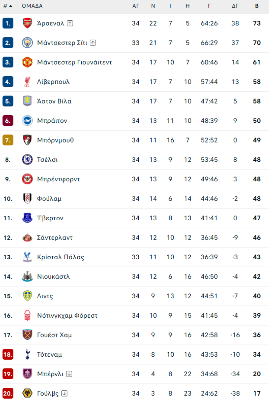 Το πρόγραμμα της 34ης αγωνιστικής της Premier League: