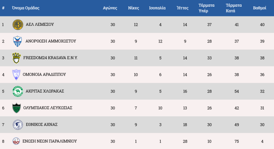 30ή αγωνιστική-4η πλέι άουτ(27/04):ΑΕΛ-Ανόρθωση 0-1 (Ιωάννου 28')