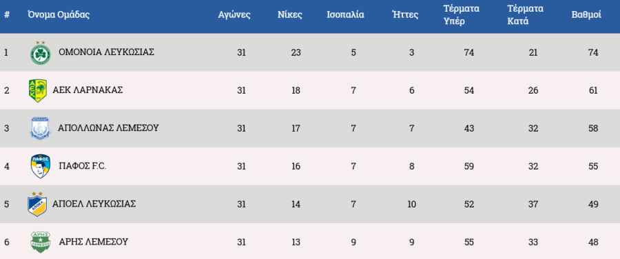 Η Ομόνοια μάζεψε μια ντουζίνα βαθμούς, έφτασε στους 74 τη στιγμή που η δεύτερη ΑΕΚ σημείωσε μόλις μία νίκη και είναι στους 61.