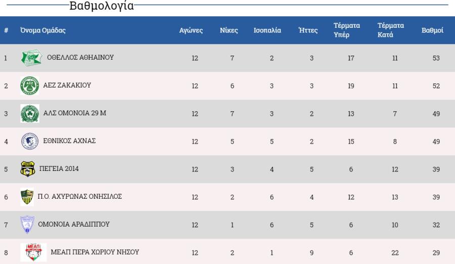 Η βαθμολογία στον Α΄ όμιλο έχει ως εξής: