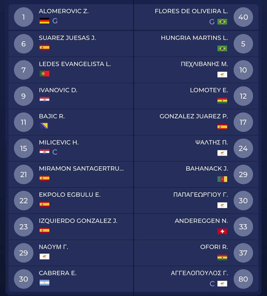 Στον πάγκο: Παρασκευά, Δημητρίου, Ιωάννου, Ρούμπιο, Γκαρσία, Πονς, Ανγκιέλσκι, Αμίν, Λουκαϊδης, Γκονζάλεθ, Νάλι
