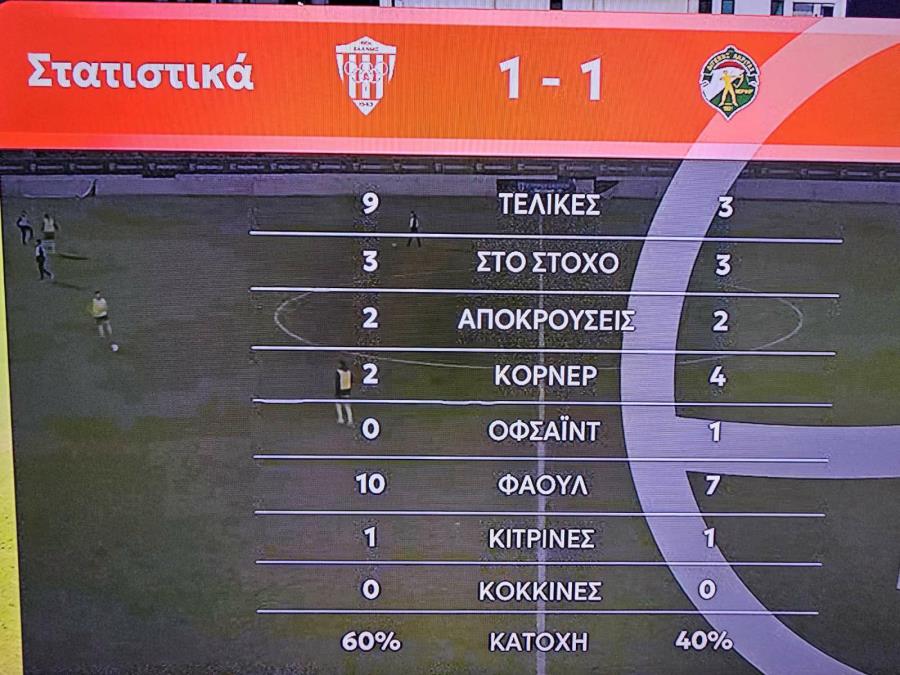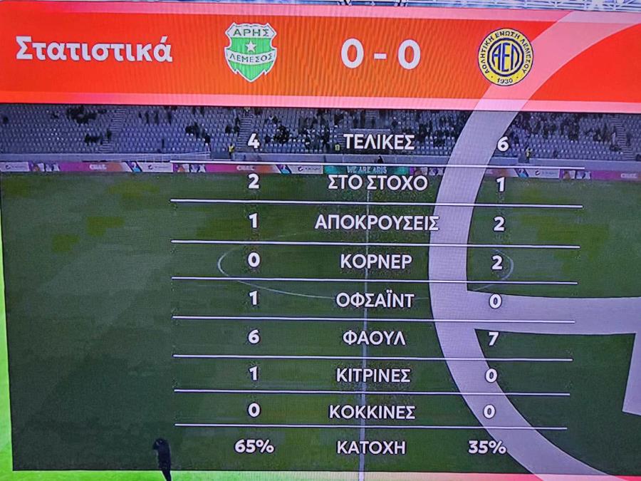 14’ Ο Μπαουνοβιτς εκτέλεσε κόρνερ, ο Νεοφύτου έπιασε την κεφαλιά στο δεύτερο δοκάρ, η μπάλα στον Λάρα.