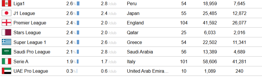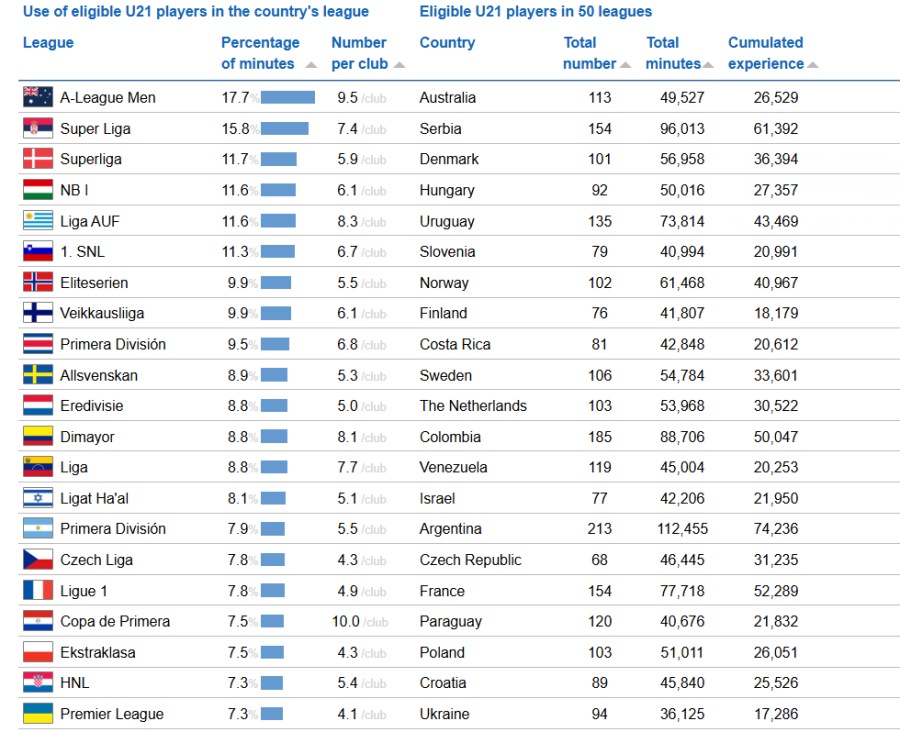 Στη λίστα με τα 50 καλύτερα πρωταθλήματα ανάπτυξης για νέους παίκτες από τις ακαδημίες η Α' κατηγορία του κυπριακού πρωταθλήματος βρίσκεται στην 42η θέση...